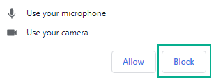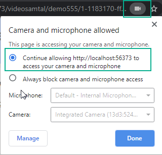 - Videokamera fungerar inte pga användaren har valt att blockera kamera och mikrofon.